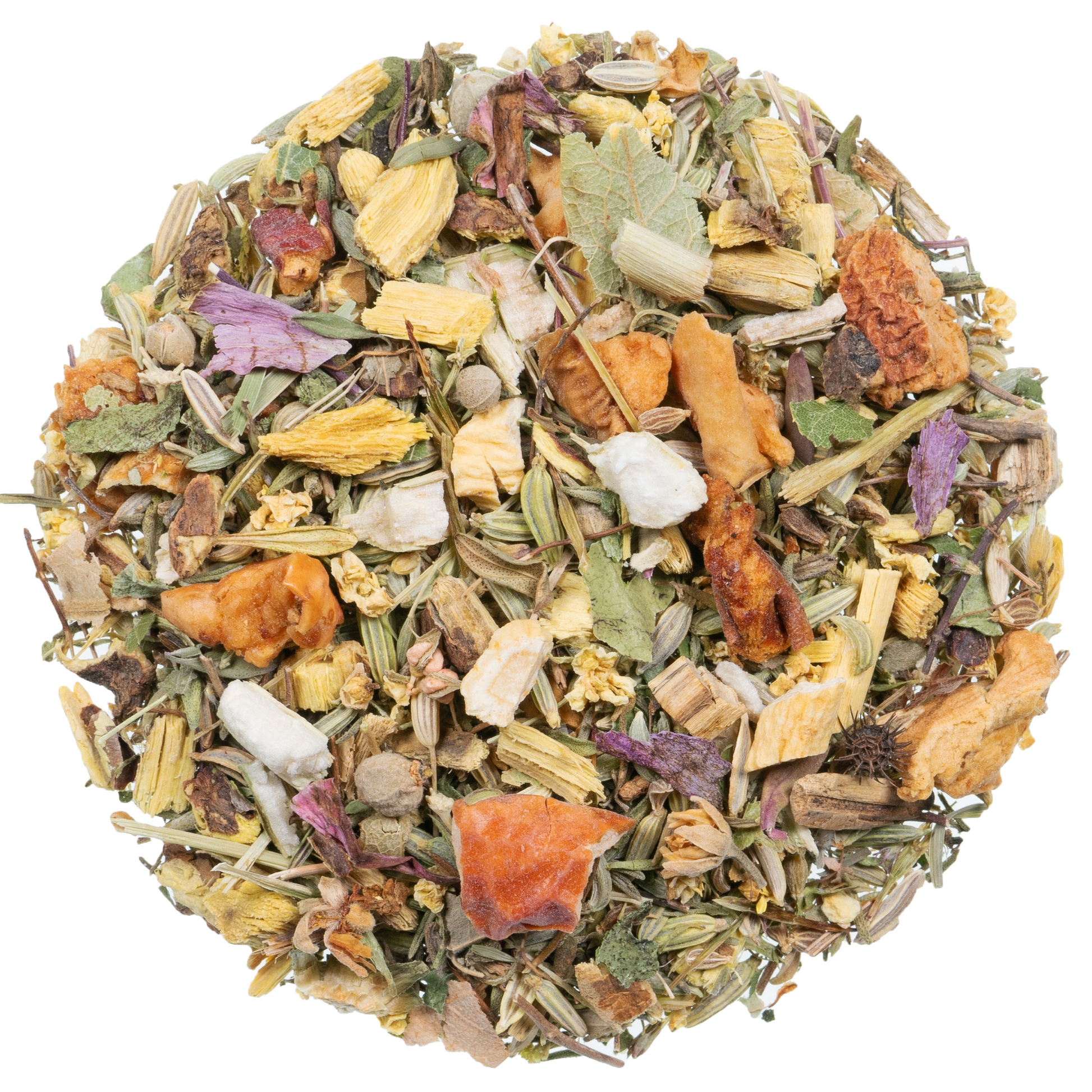 venkel, appelstukjes, zoethoutwortel, tijm, anijs, wilde tijm, echinacea, lindebloesem, vlierbloesem, ginsengwortel, vitamine C (1,5%), zinkgluconaat (0,5%)