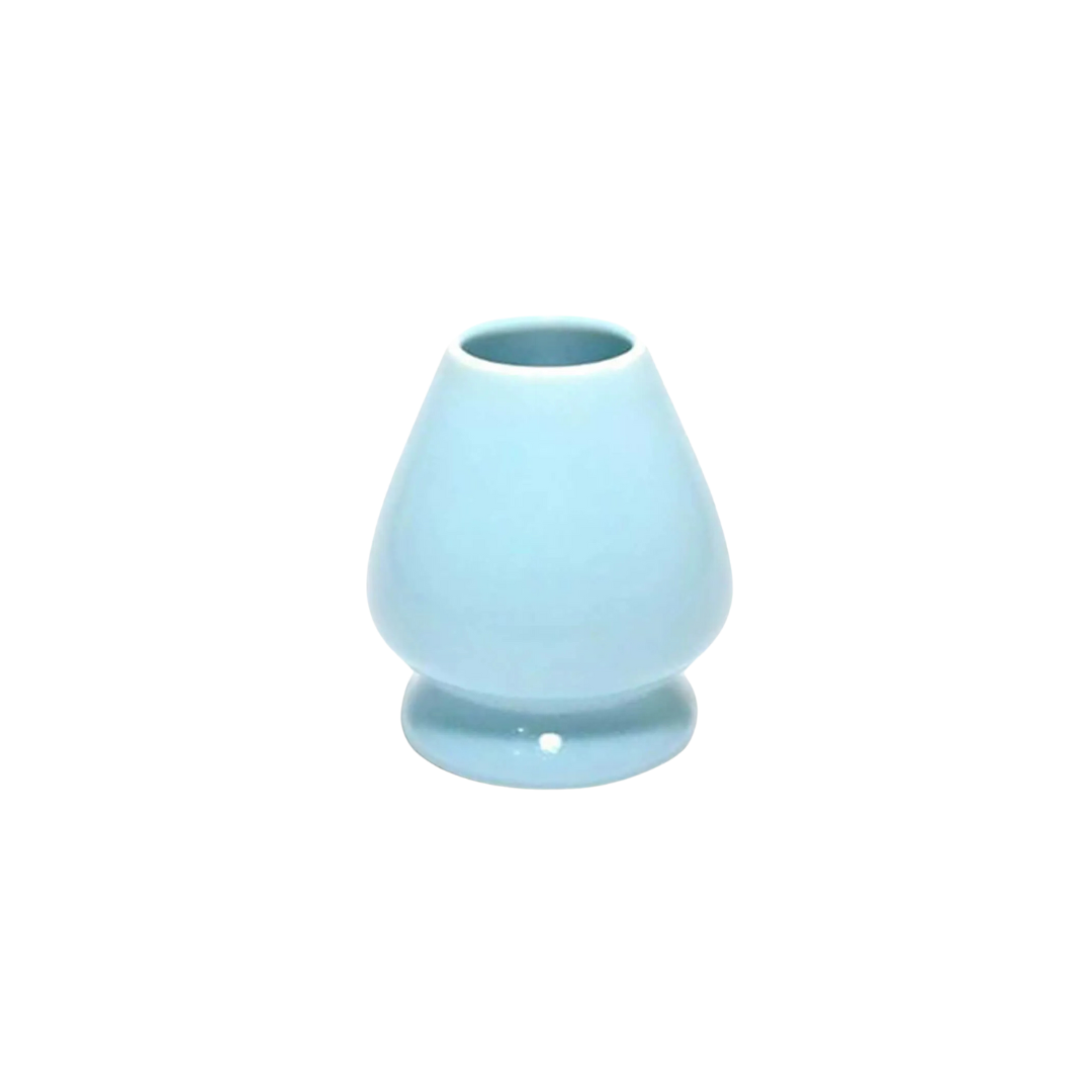 Lichtblauwe houder voor je matcha klopper – laat de klopper uitlekken na gebruik en helpt zijn vorm te behouden