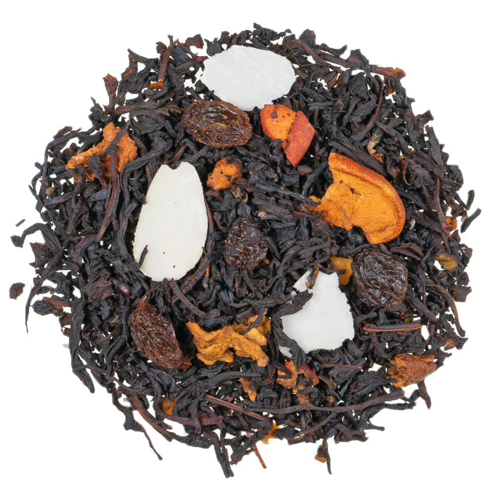 zwarte thee Assam, appelstukjes(13%), rozijnen, aroma, amandelschilfers(2,4%)