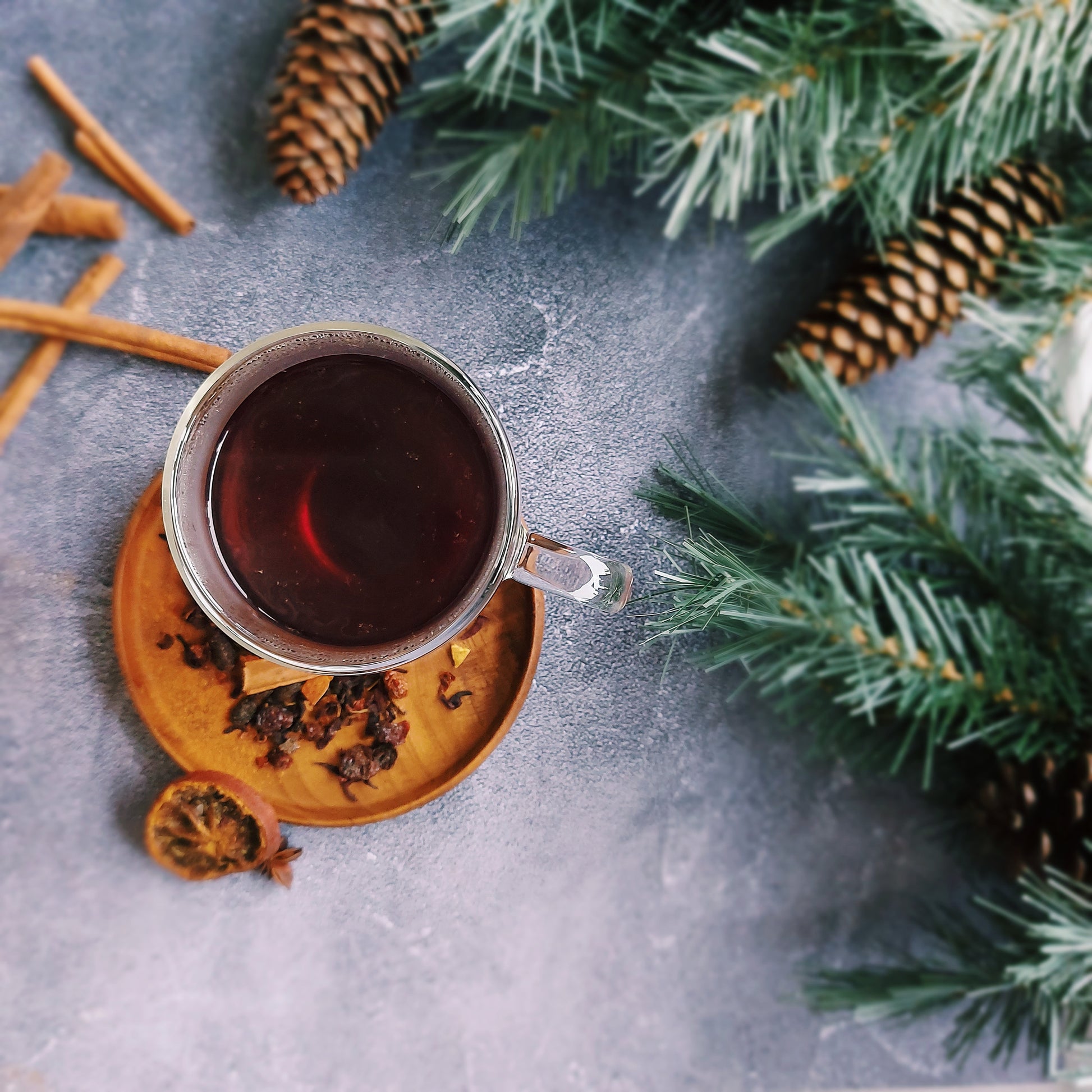 hibiscusbloesems, rozijnen, rozenbottelschillen, sinaasappelschillen (10%), suiker, natuurlijke aroma’s, kaneelstokjes (6%), schijfjes mandarijn, kruidnagel, steviabladeren, steranijs.